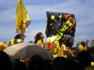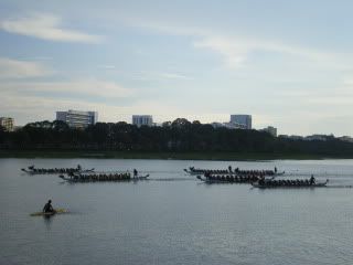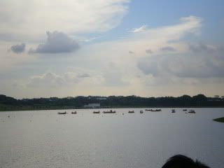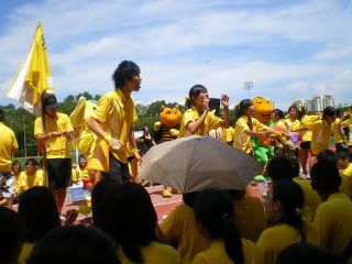 Day 2 started with changing into our yellow Biz School shirt and followed by 2 rounds of lectures? Yeah and then we melted(literally) under the scorching sun for the mass dance competition, followed by REGATTA. Isn't that a cool name? REGGATA REGGATA REGGATA. It is a dragonboat compeition! It was held at Bedok Reservior, which is practically TP's backyard. Minister of Foreign Affairs, Mr George Yeo came too, LOL? It was extra awesome because we had SINGAPORE'S NO.1 WAKEBOARDER TO PERFORM FOR US, which orientation has such a thing, you tell me? HAHA! <: